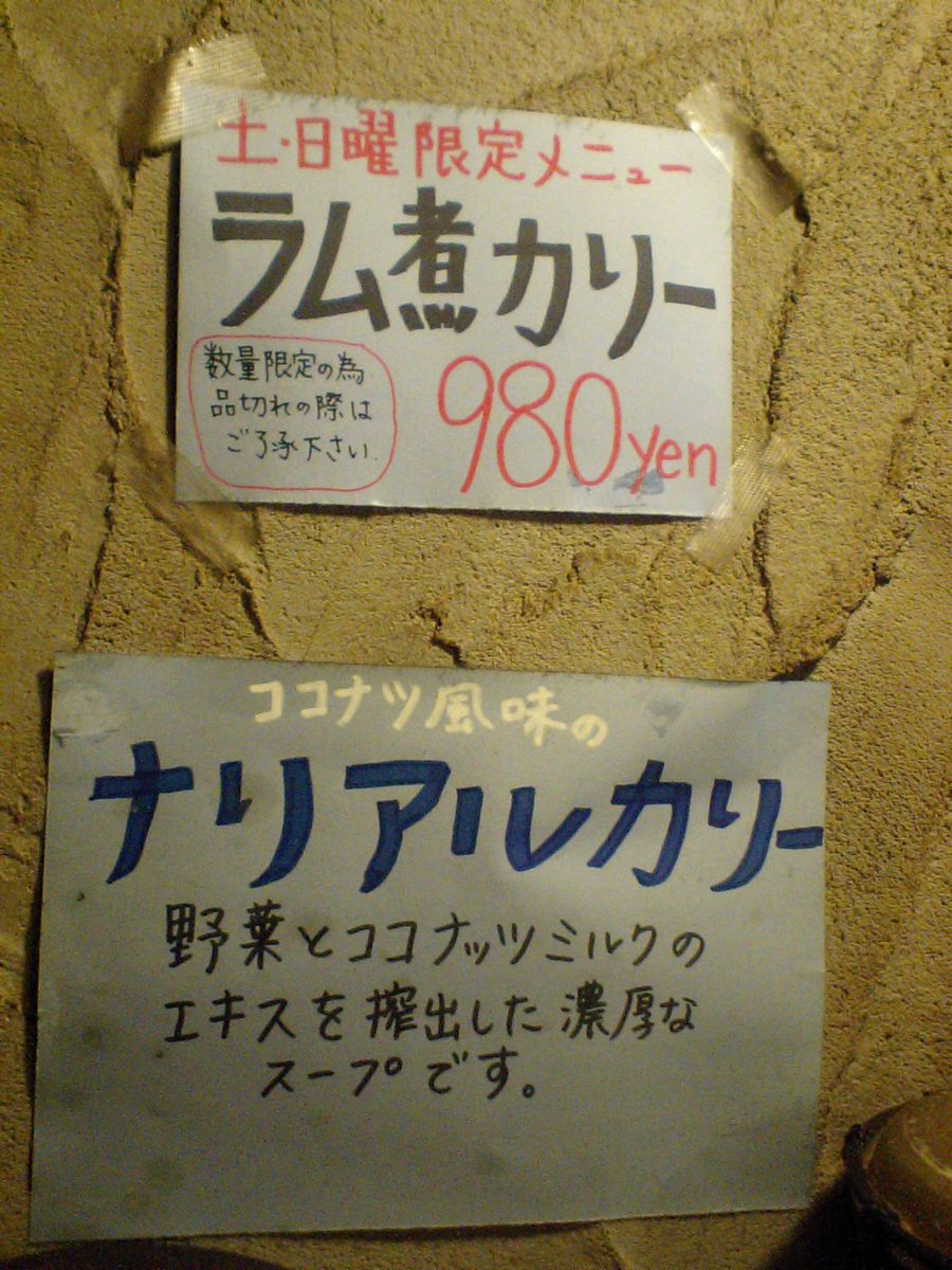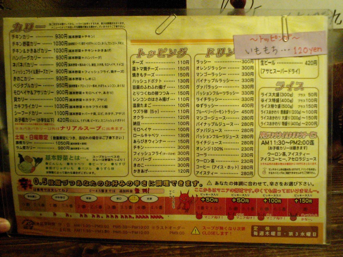 メニューはこちら クリックで拡大 ちょっと見づらいかも