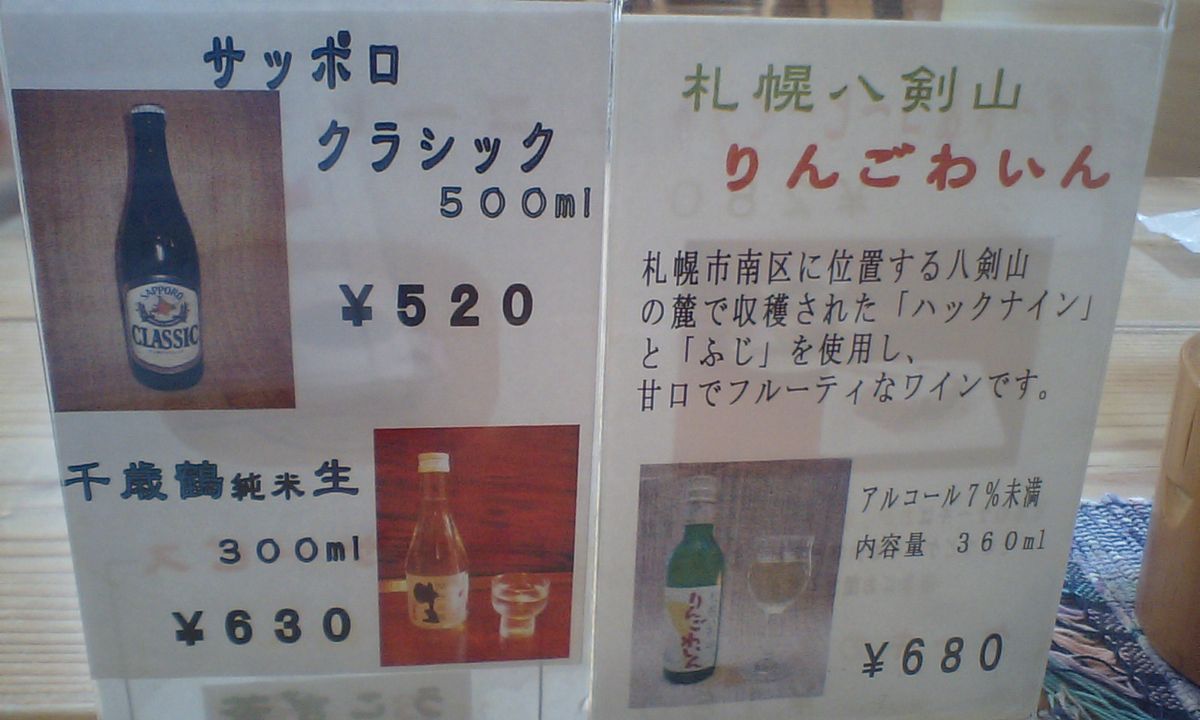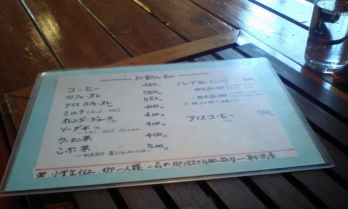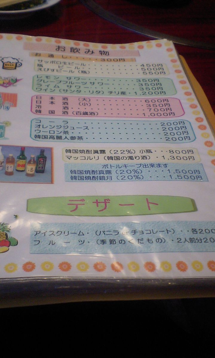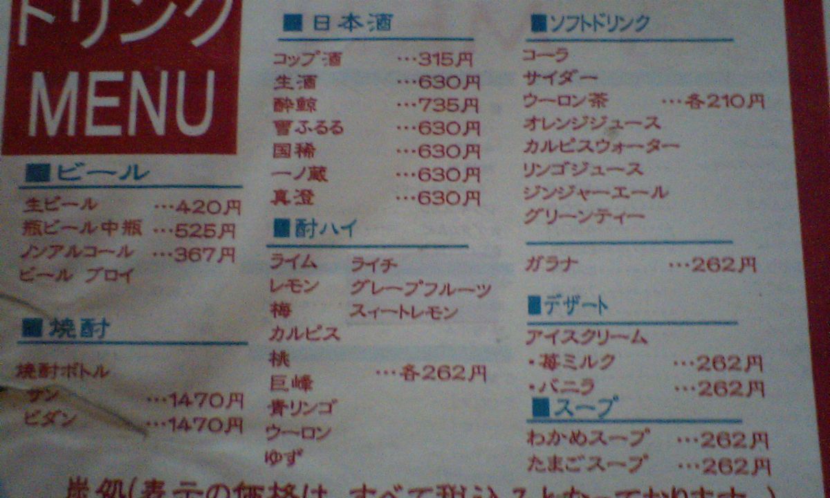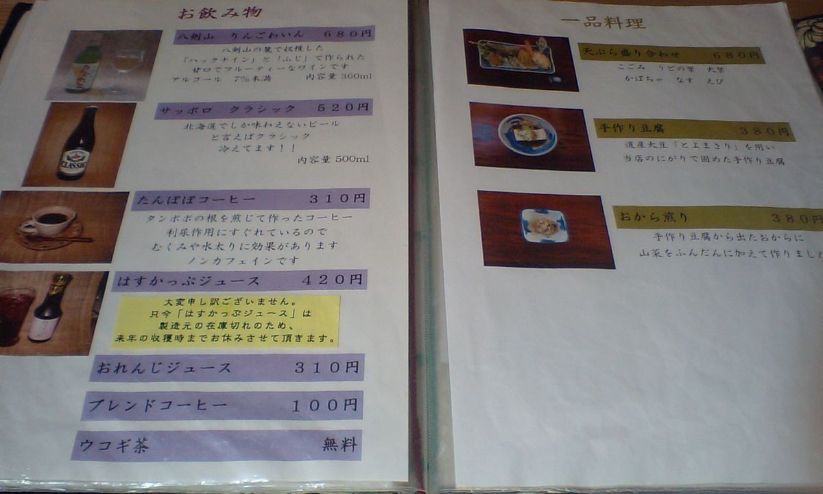 メニューはこちら 裏がフードメニューですが取り忘れました
