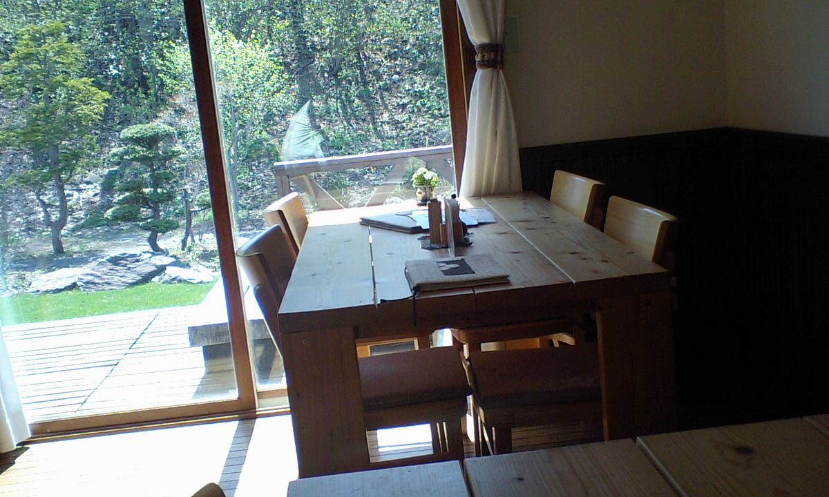 窓際の席は窓のほうを向いていて個室にいるような雰囲気