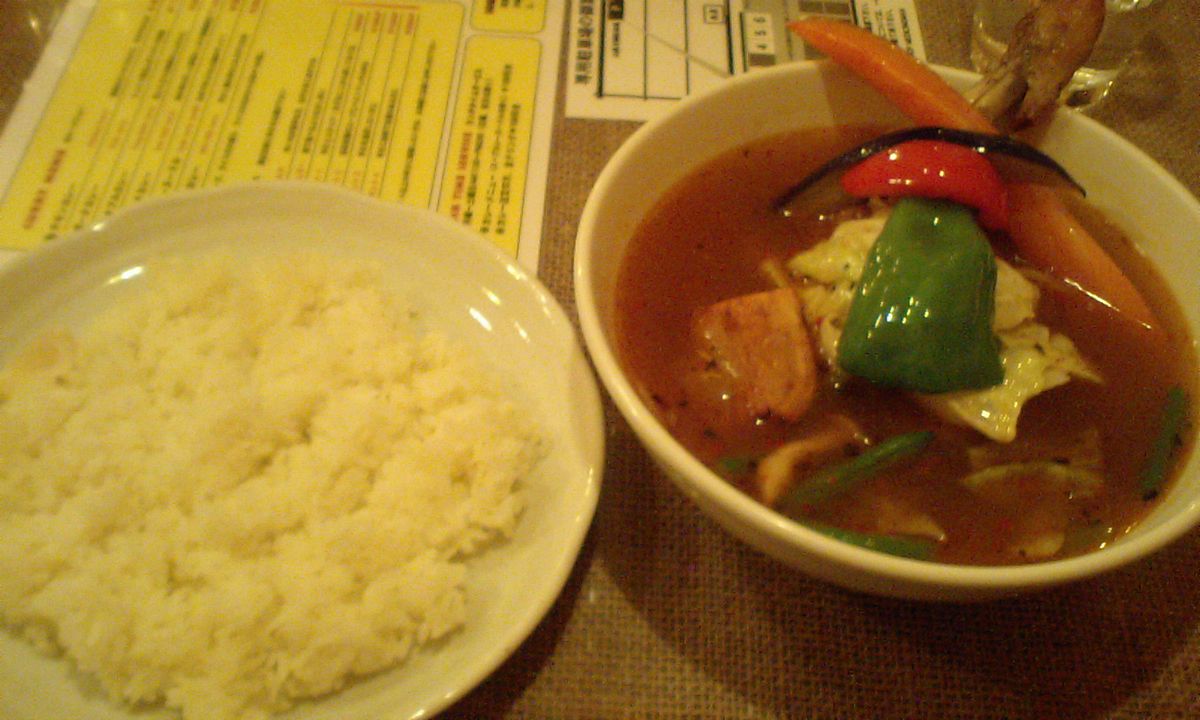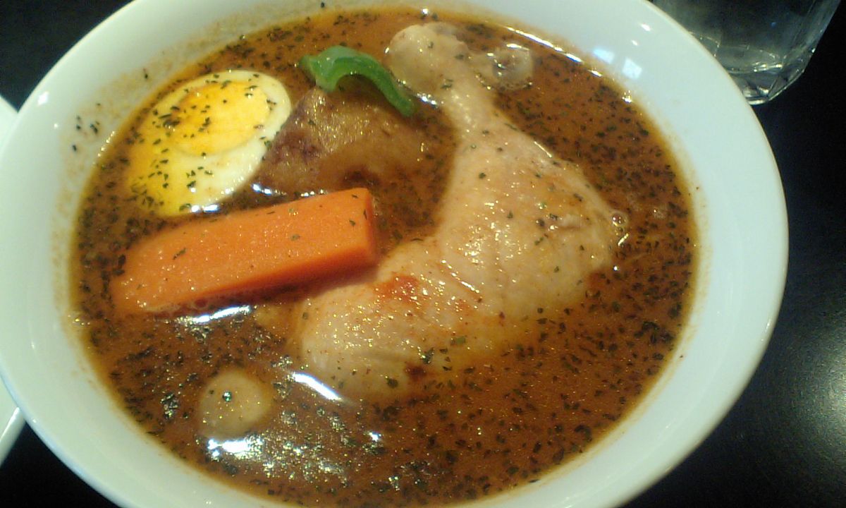 骨付きチキンのスープカレー 辛さ10 大盛りライス(無料)