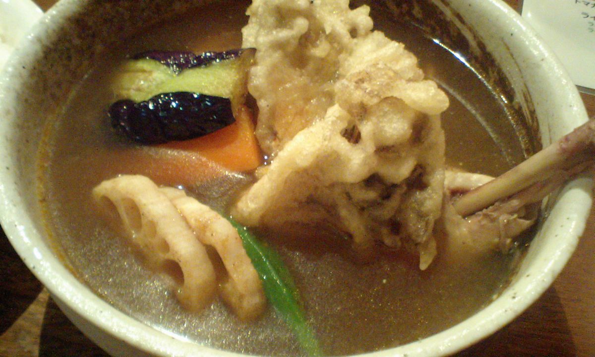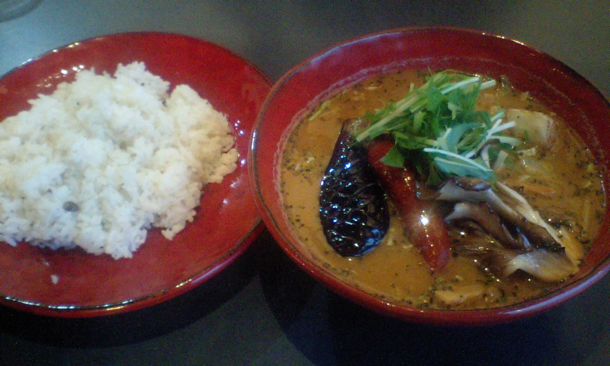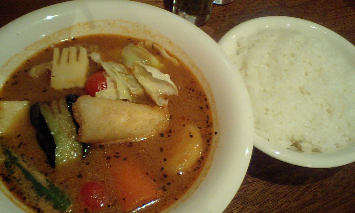 スープはイタリアンな感じ トマトの酸味とココナッツの甘みが