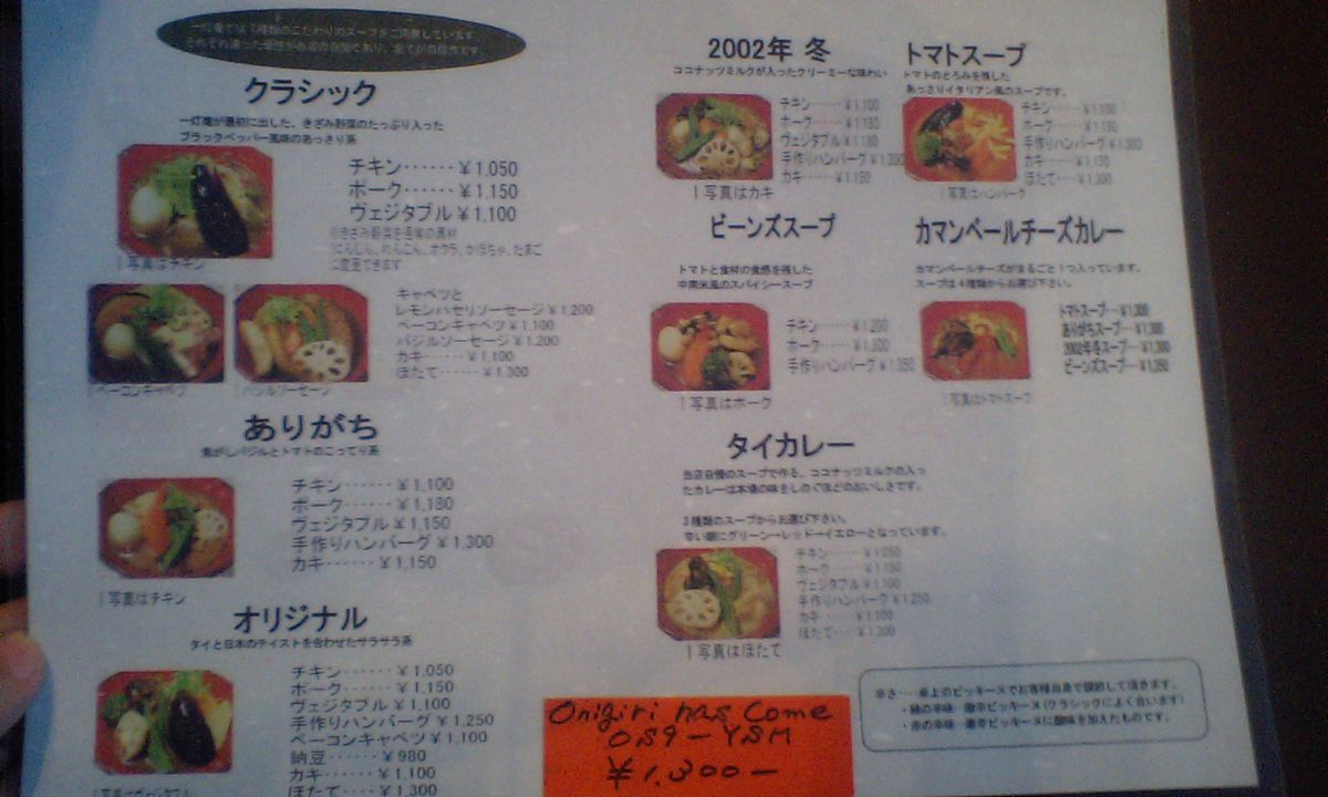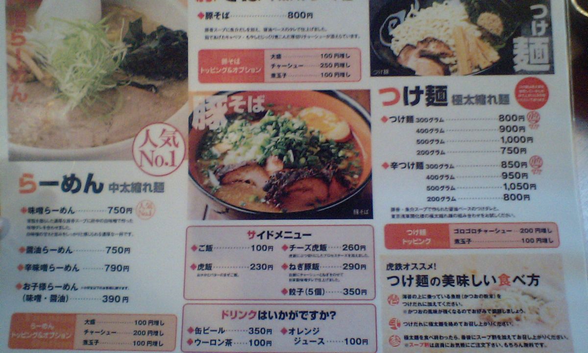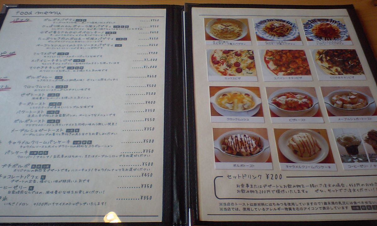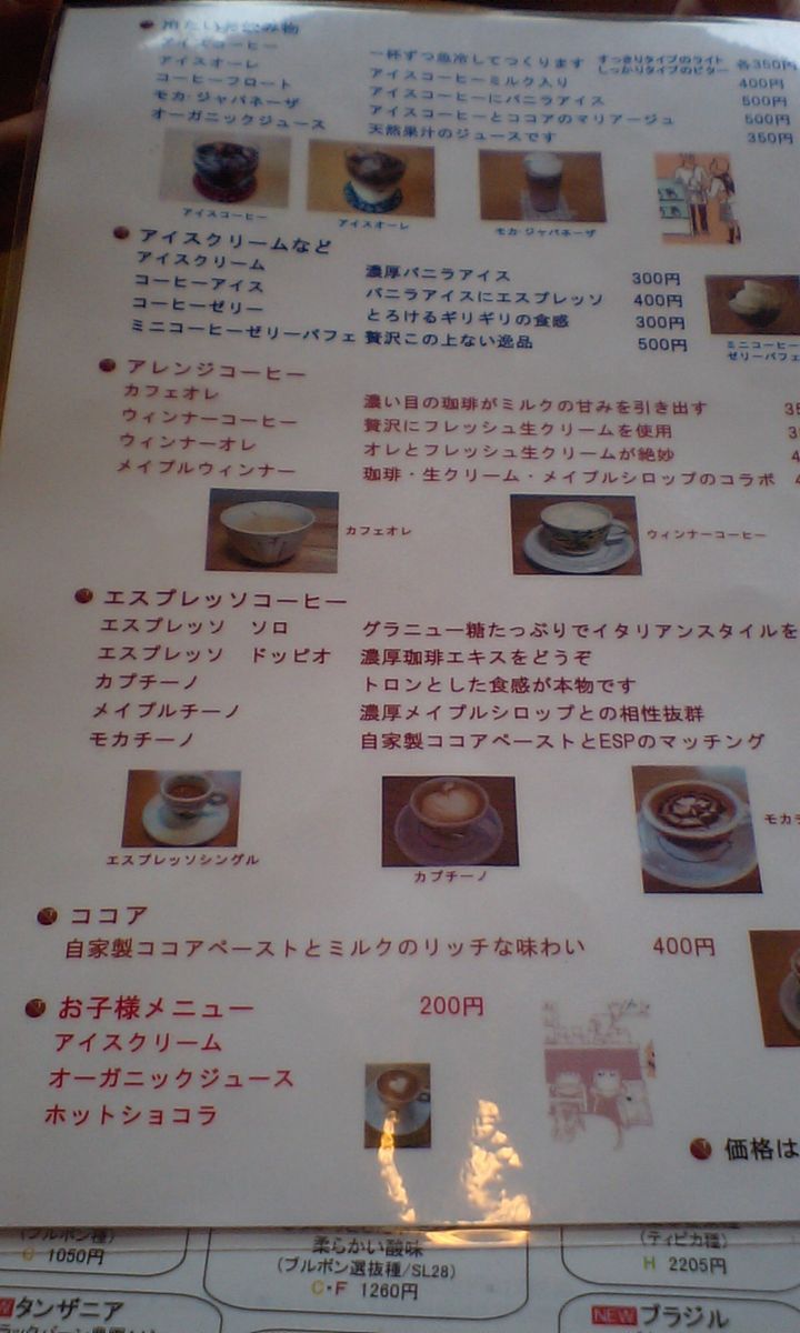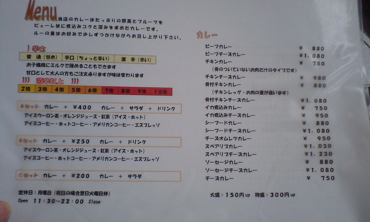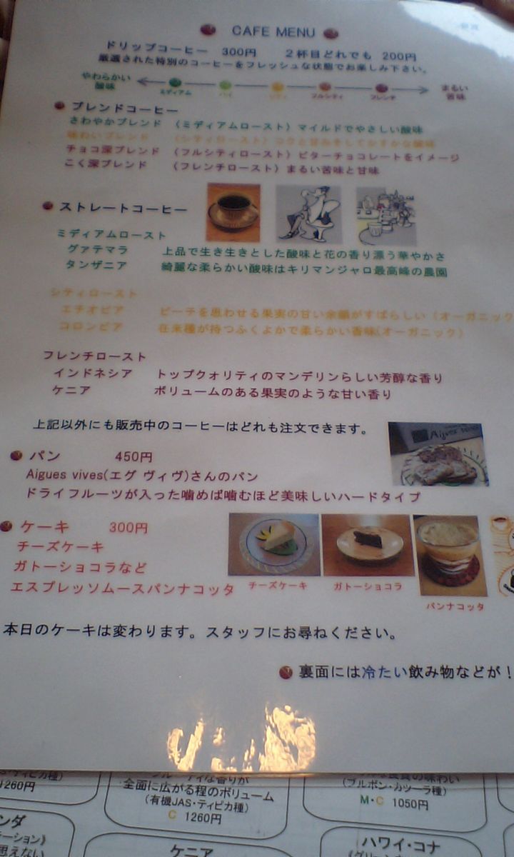 メニューはこちら クリックで拡大! ちょっと見づらいです・・