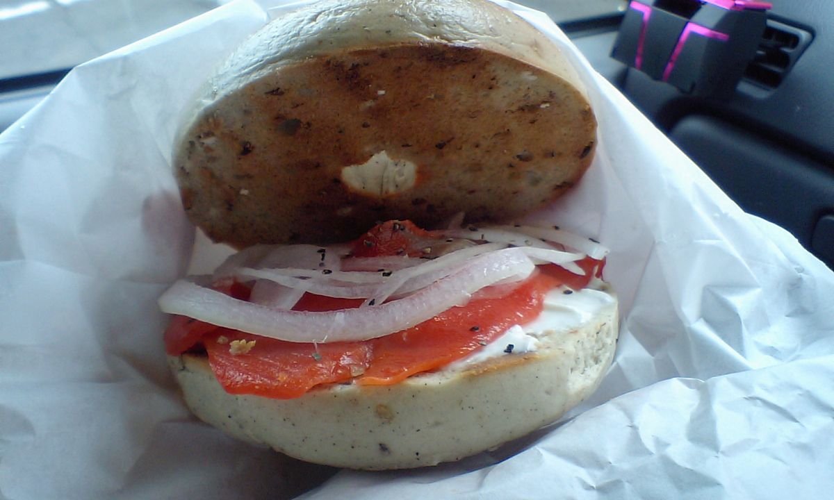 相方さんが蒸し鶏のサンド ベーグルが全粒粉