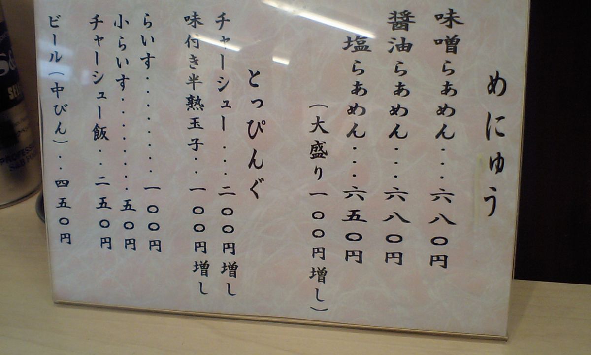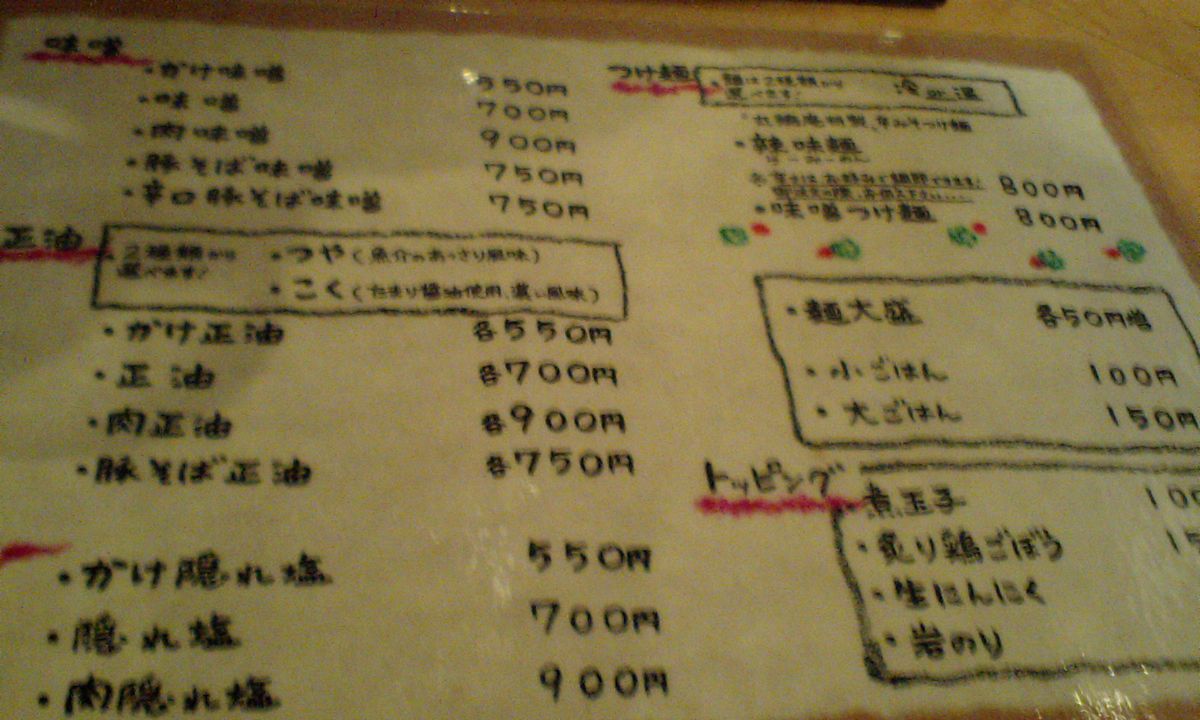 「お魚正油」の三種類で麺の量も選べます