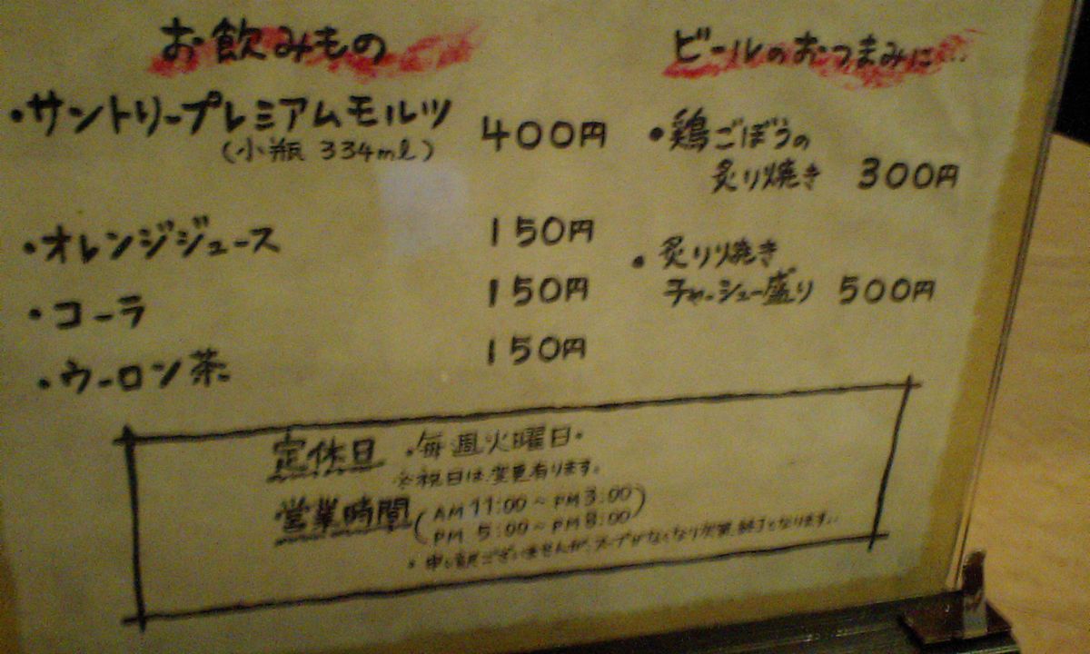 今回はメニューを発見しましたので掲載します クリックで拡大!