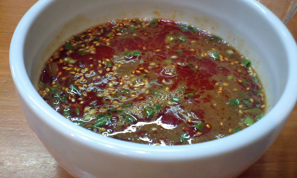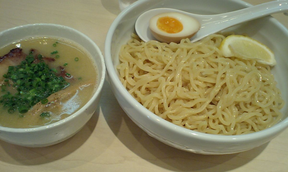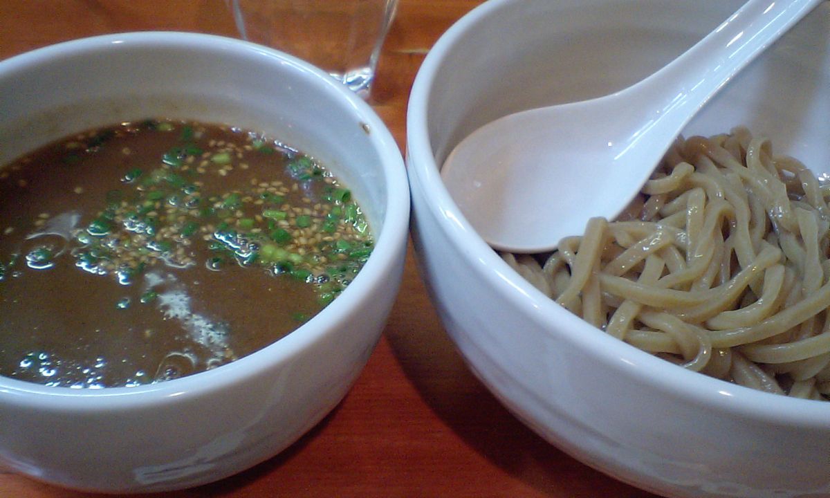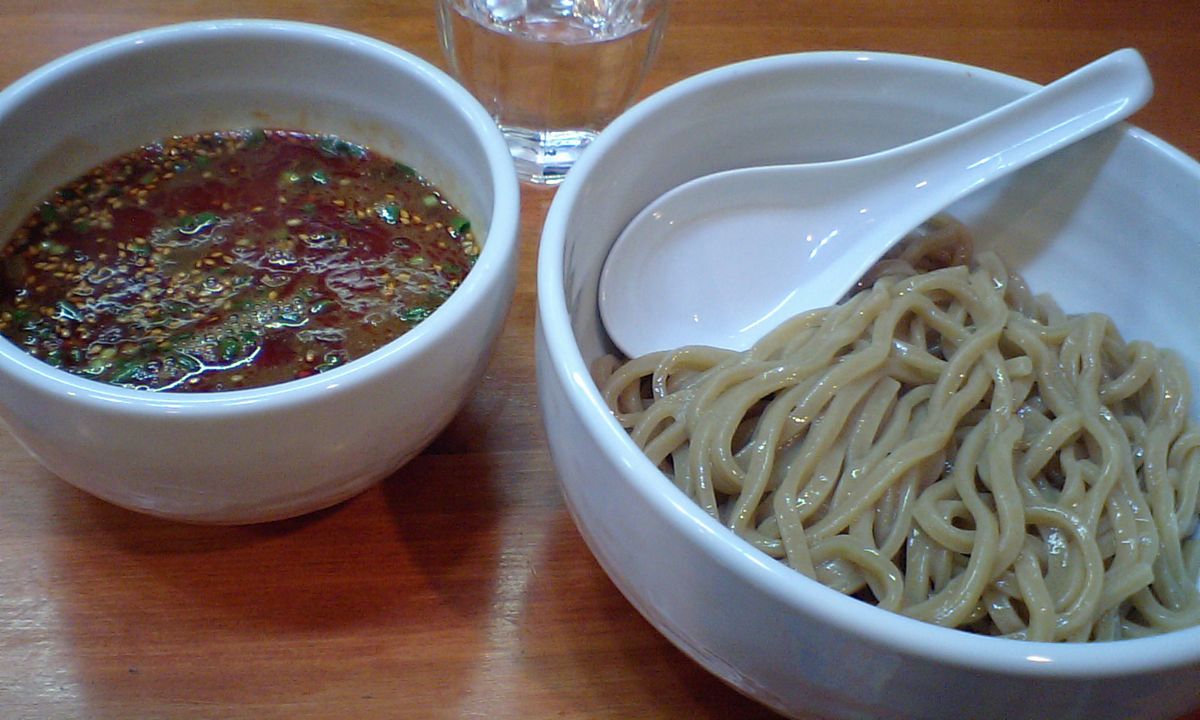 食券制でメニューは「つけ麺(温、冷)」 「辛つけ麺(温、冷)」