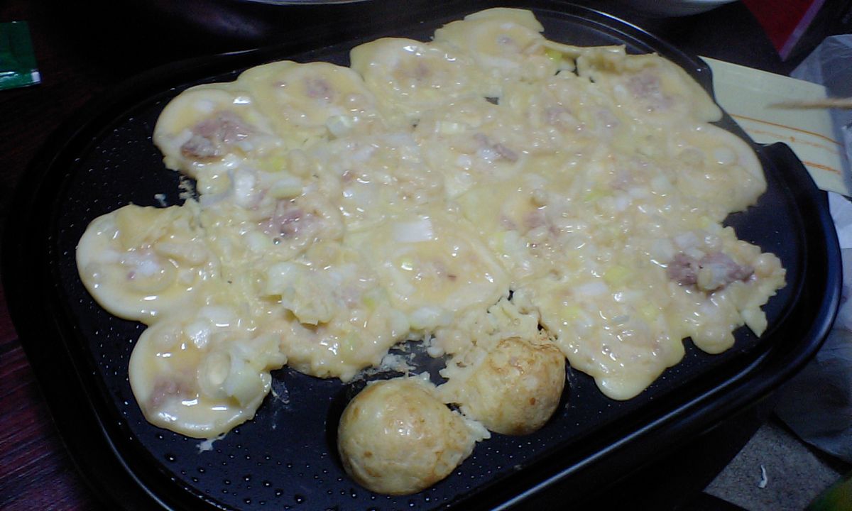 たこは下ごしらえが面倒なのでツナでエセたこ焼きです(笑)