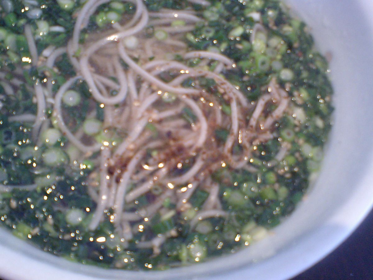 まずそば茶と一緒にサービスのゆで卵、天カスが出てきました