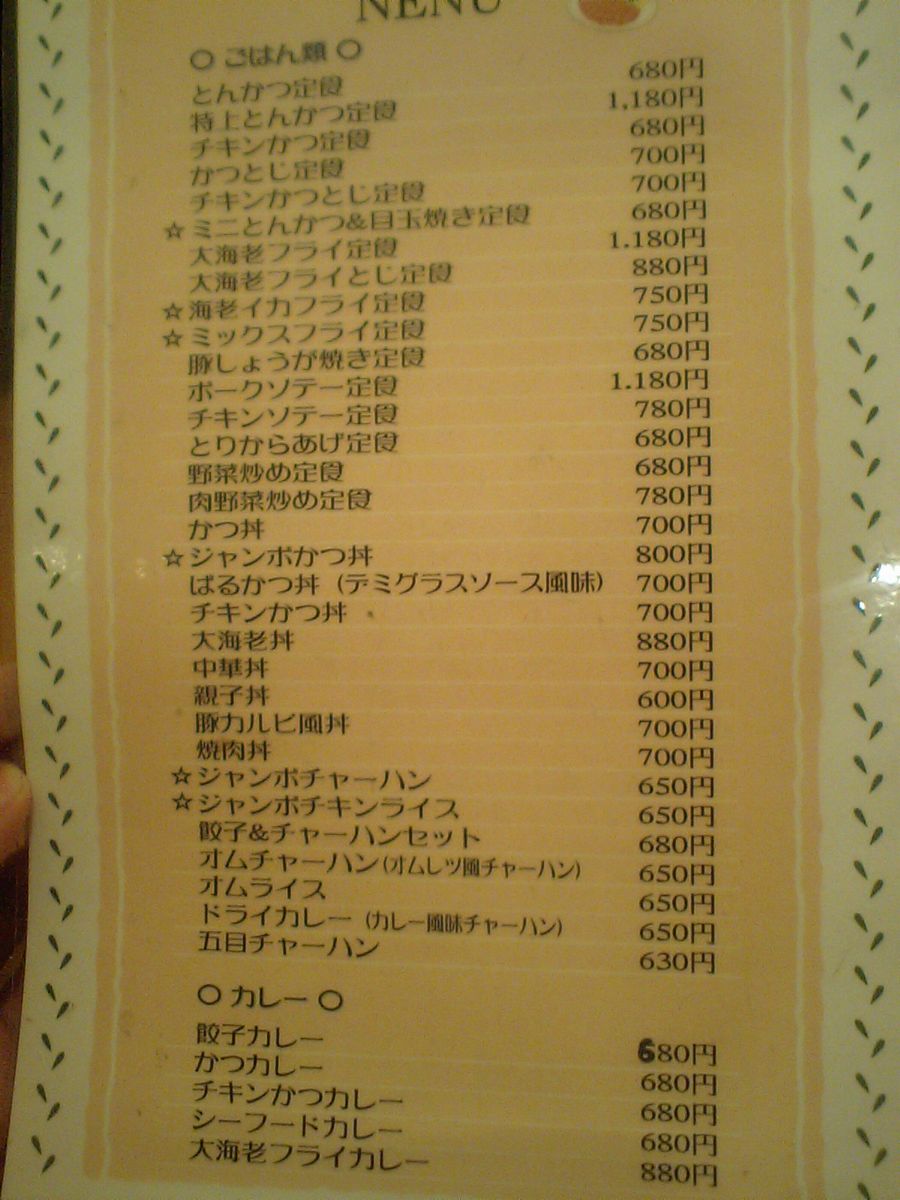 食堂のメニューはこちら ちょっと切れてるか・・