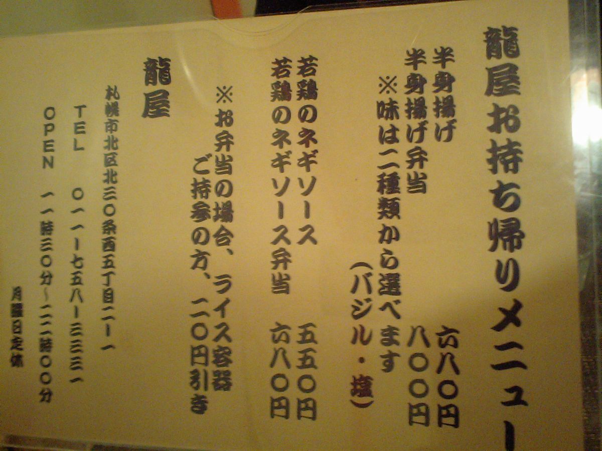 北34条の「半身上げ 龍屋」に行ってきましたYO!