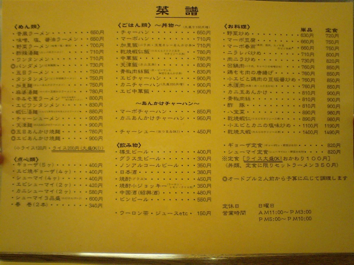 メニューはこちら クリックで拡大! 画像悪し・・・