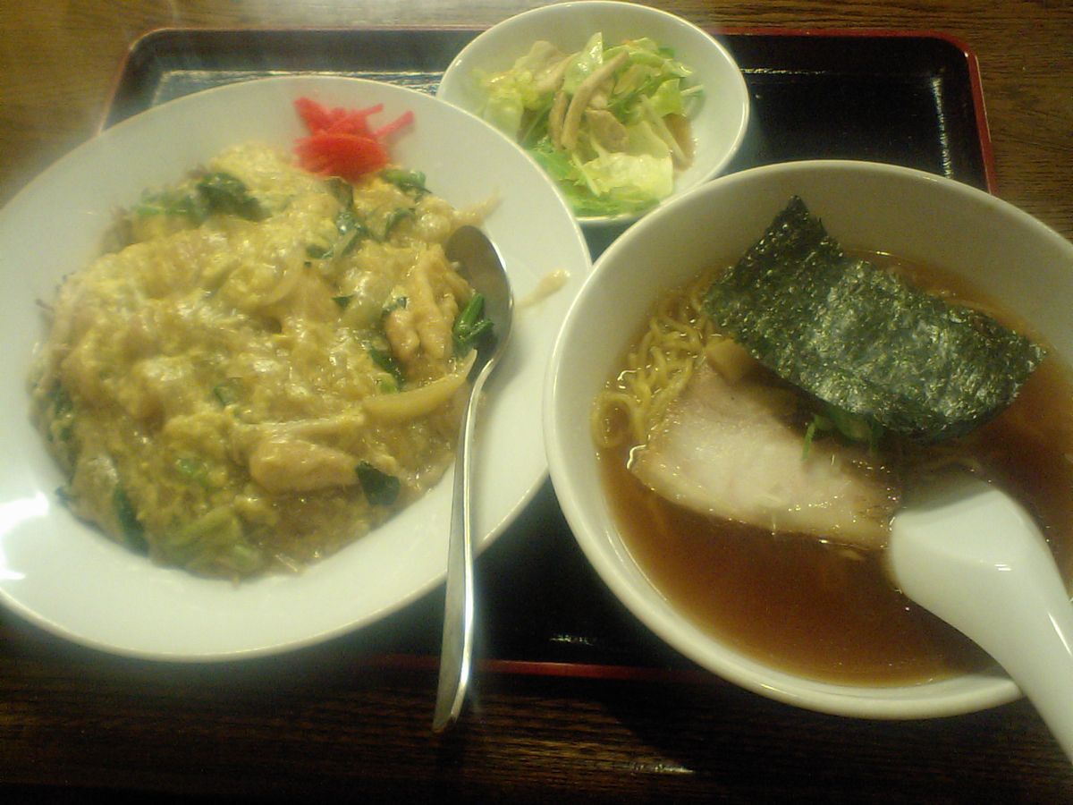 鶏肉の玉子とじあんかけ丼と小ラーメン