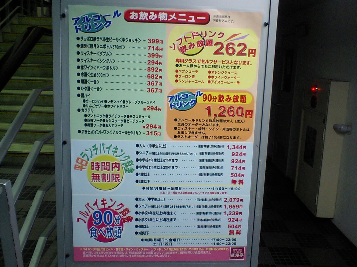 軽食コーナーのメニューはこちら クリックで拡大!