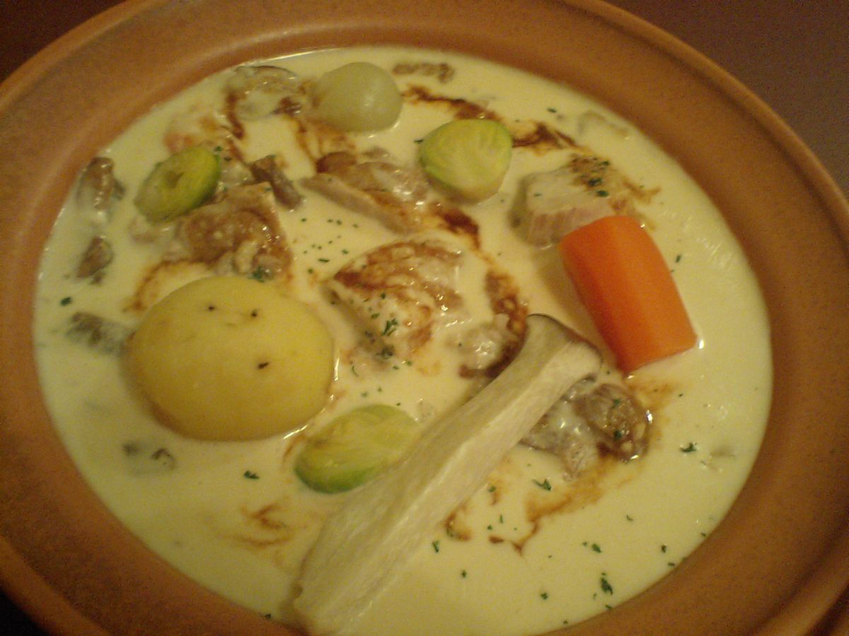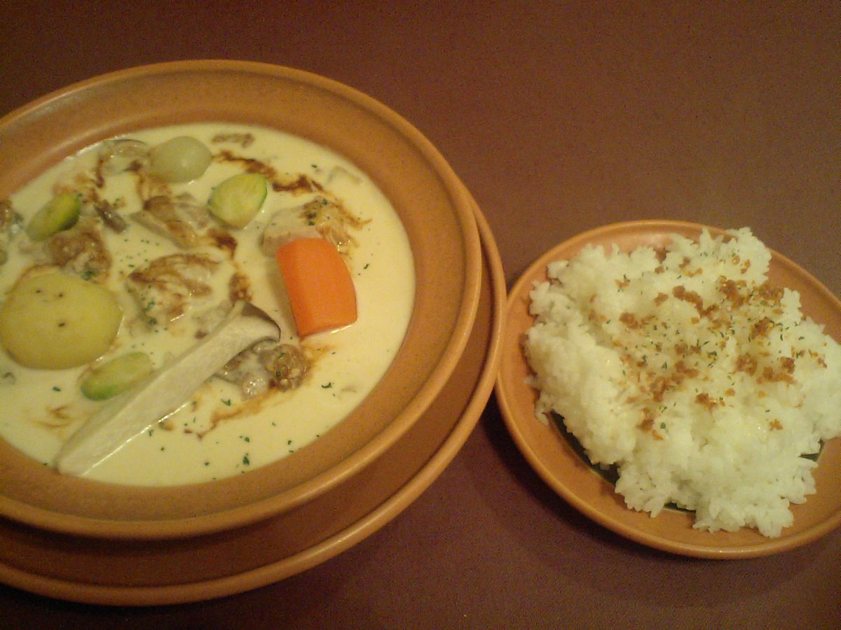 若鶏と海老のポルチーニクリームシチュー+ライス