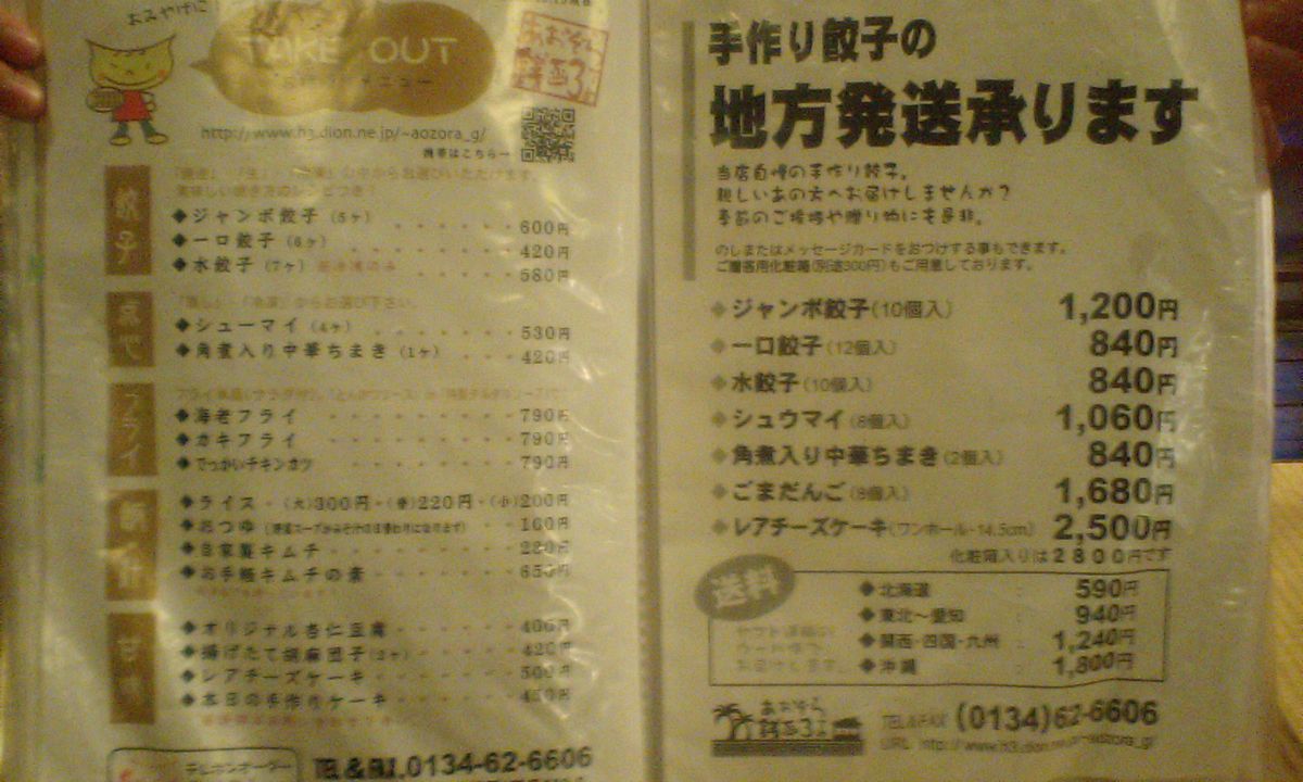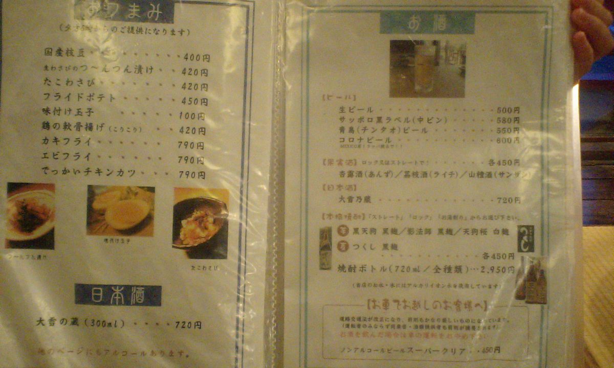 メニューはこちら クリックで拡大! 写り悪しです・・