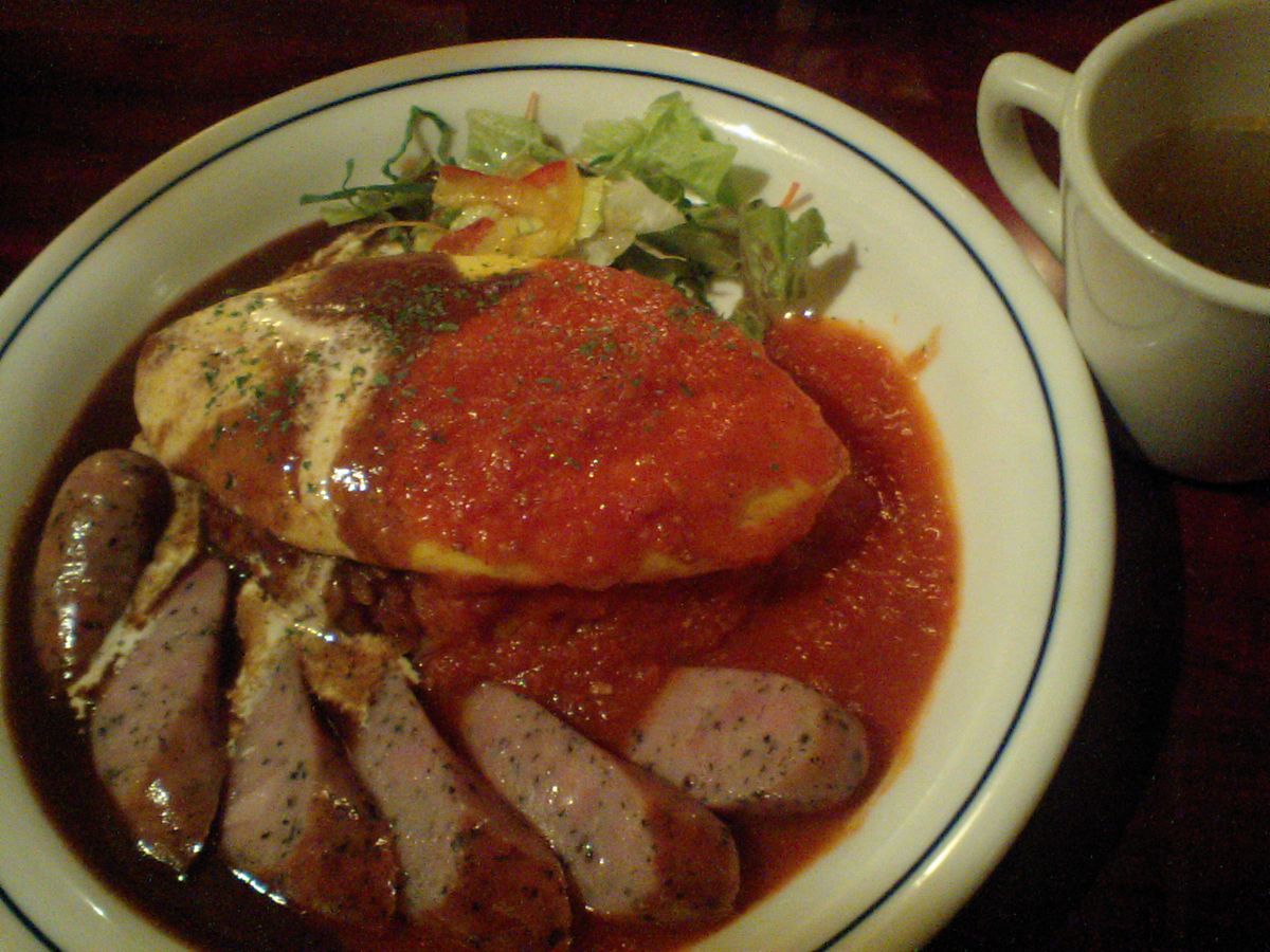 バジルソーセージオムライス ケチャップライス トマトソース&デミソース