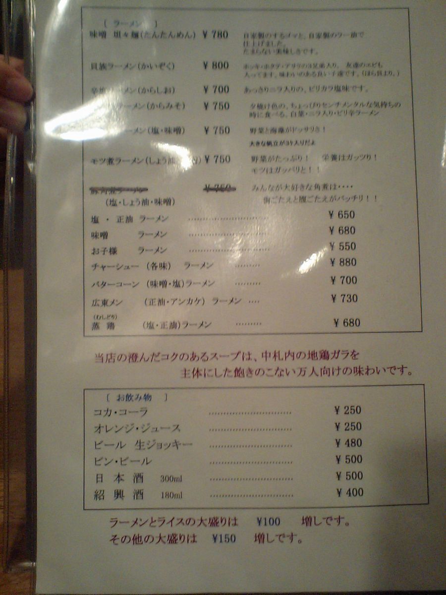 メニューはこちら↓ クリックで拡大 今回画像悪し