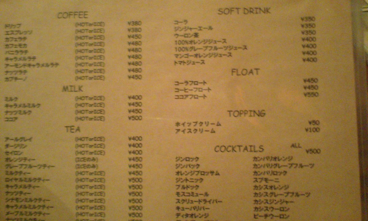 ドリンクメニュー